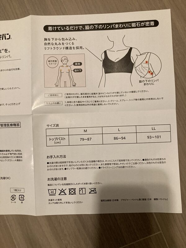 使用してみると軽くて締め付けない付け心地がとてもよく、ピップエレキバンの磁気の効果も期待したいな…!と思えるブラジャーでした。