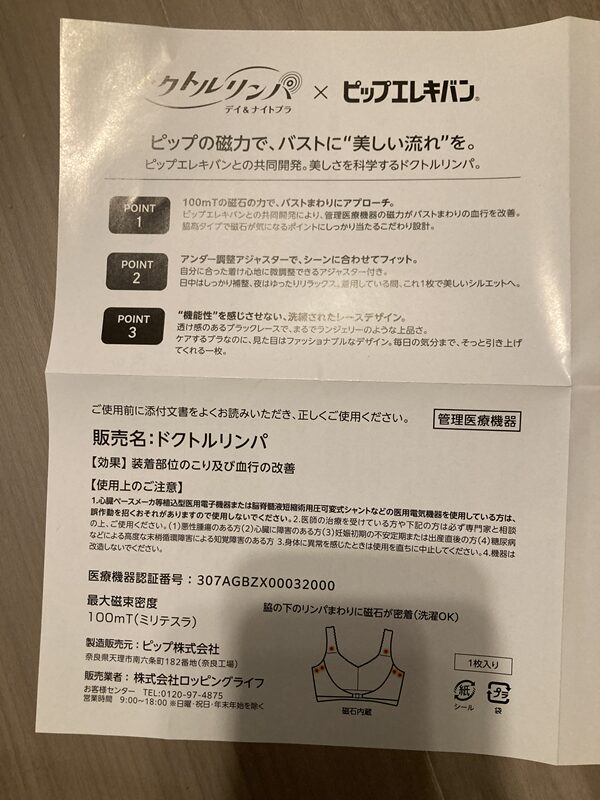 ドクトルリンパはピップエレキバンと一番星の共同開発のデイ&ナイトブラです。